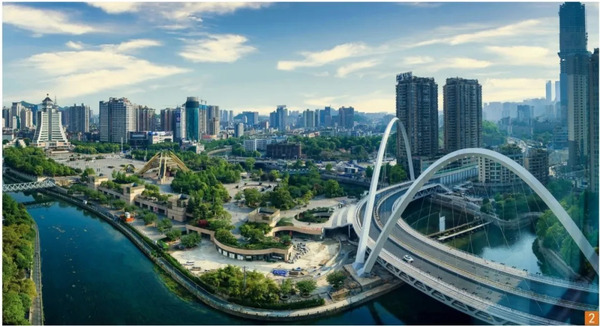 Along the Nanming River, Zhucheng Square is a hub of activities where kites soar against the blue sky by day and live music fills the air by night.
